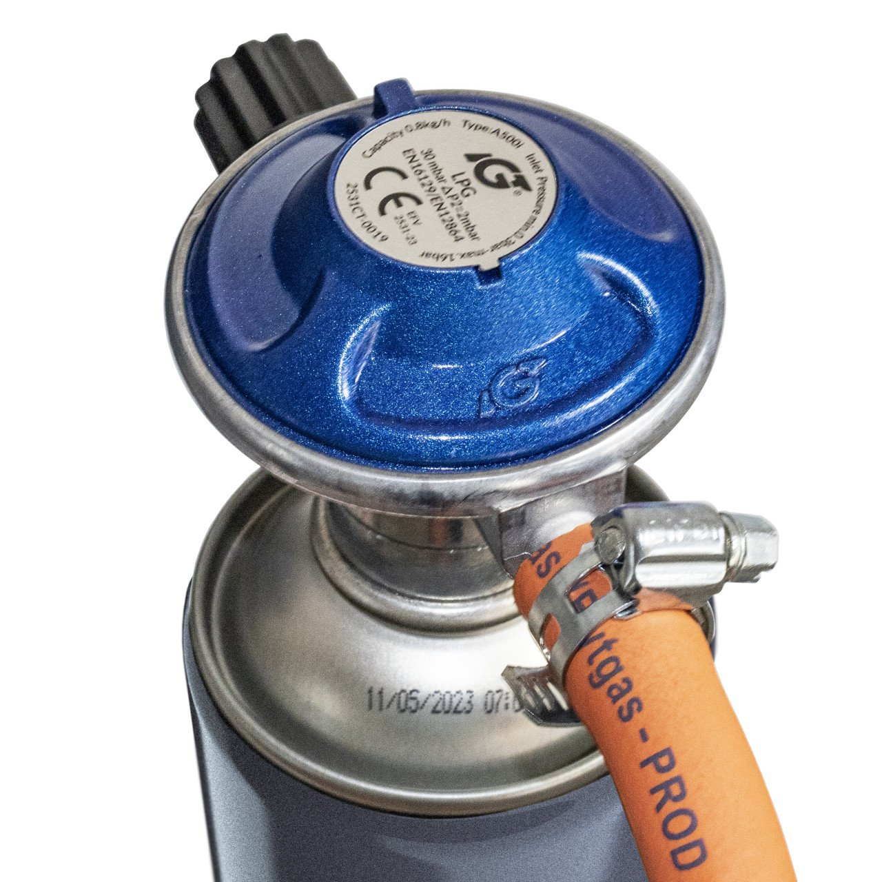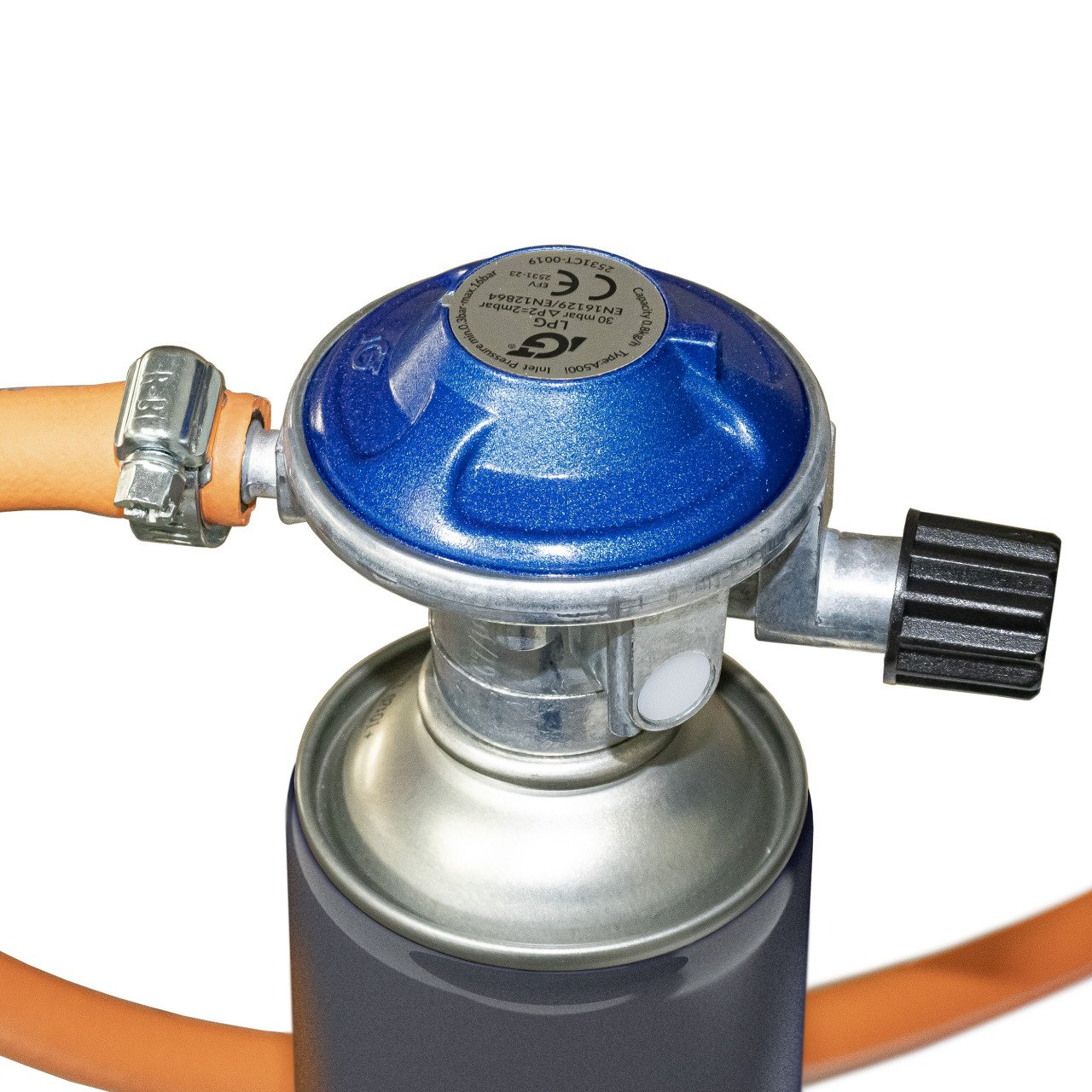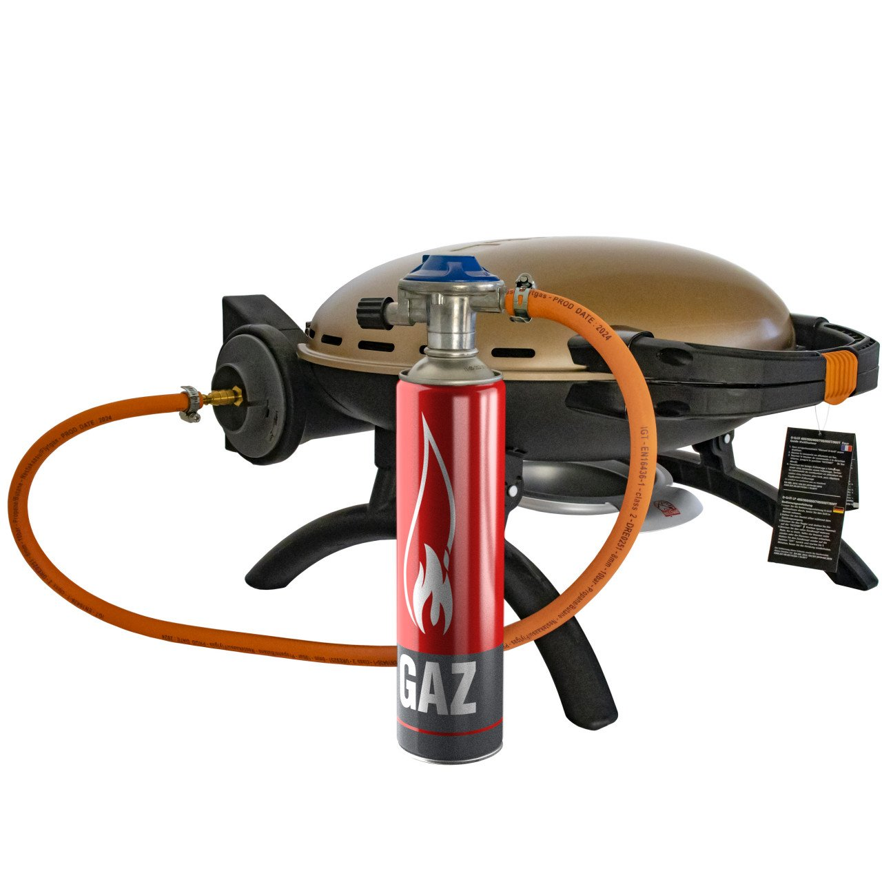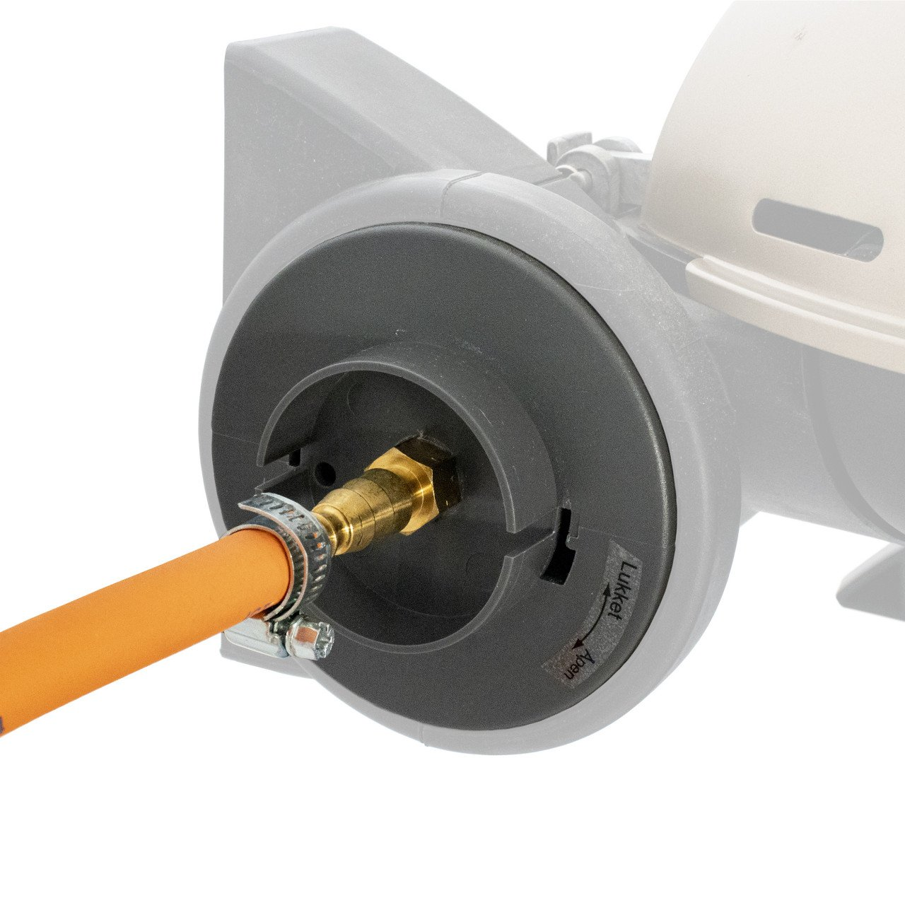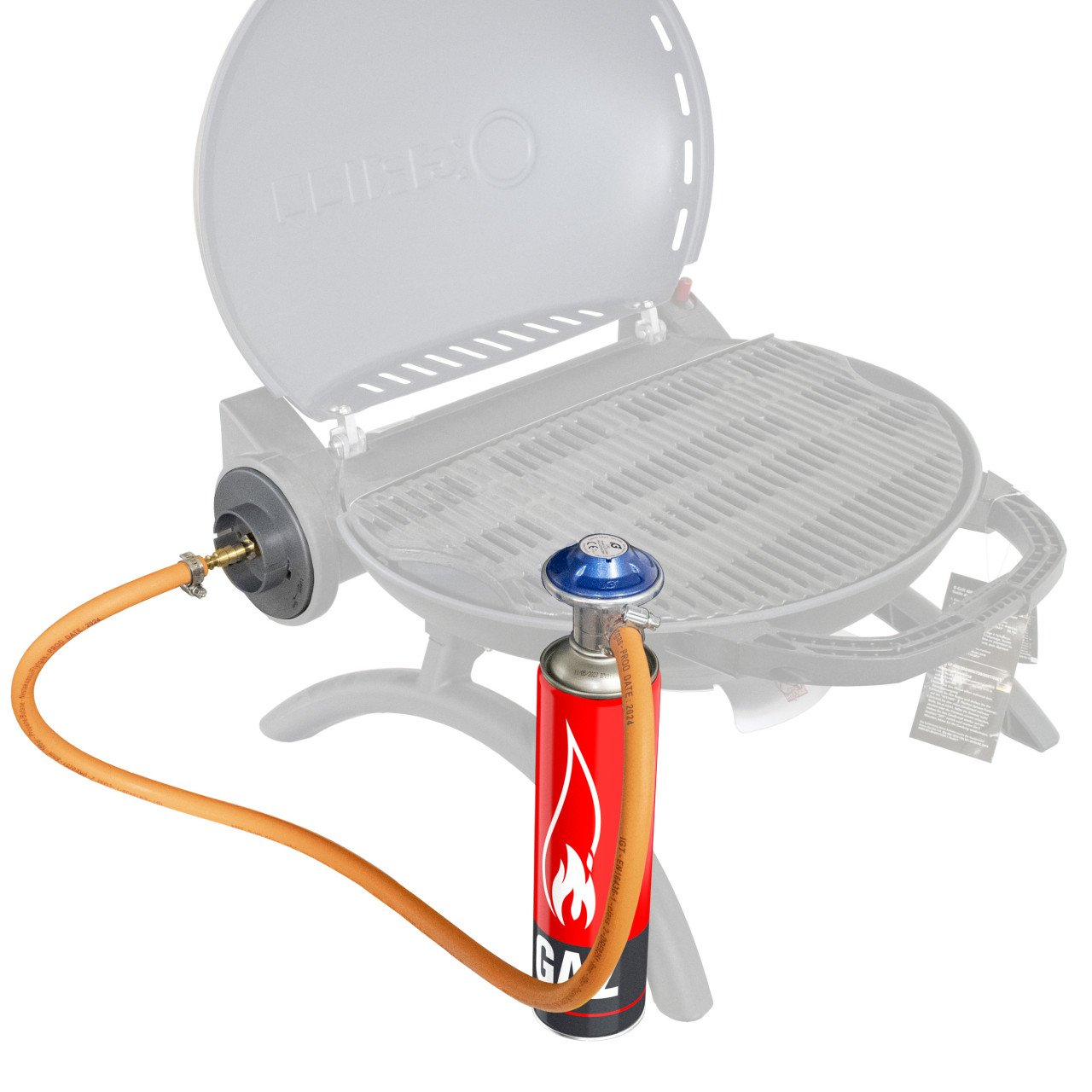 Alimentat prin butelii propan de unica folsinta sau butelii clasice pentru gaz(propan, butan, GPL), arzatorul in forma “D” al O-grill-ului va genera temperatura intensa si eficienta. Stuterul de conectare la sursa de gaz este compatibil cu doua diametre de furtun; 10 mm si 15 mm. Reglajul intensitatii flacarii incorporat in structura gratarului, NECESITA conectarea unui furtun de gaz cu ceas