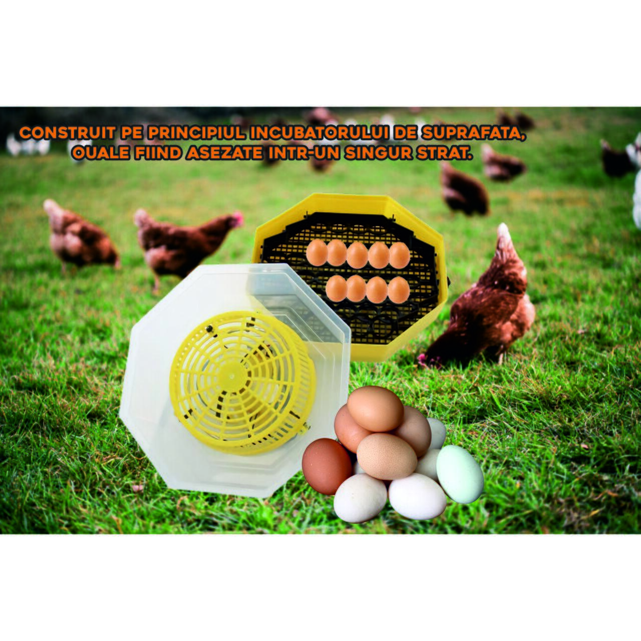 ✅ Temperatură incubare: 38°C (reglabilă în funcție de tipul ouălor)