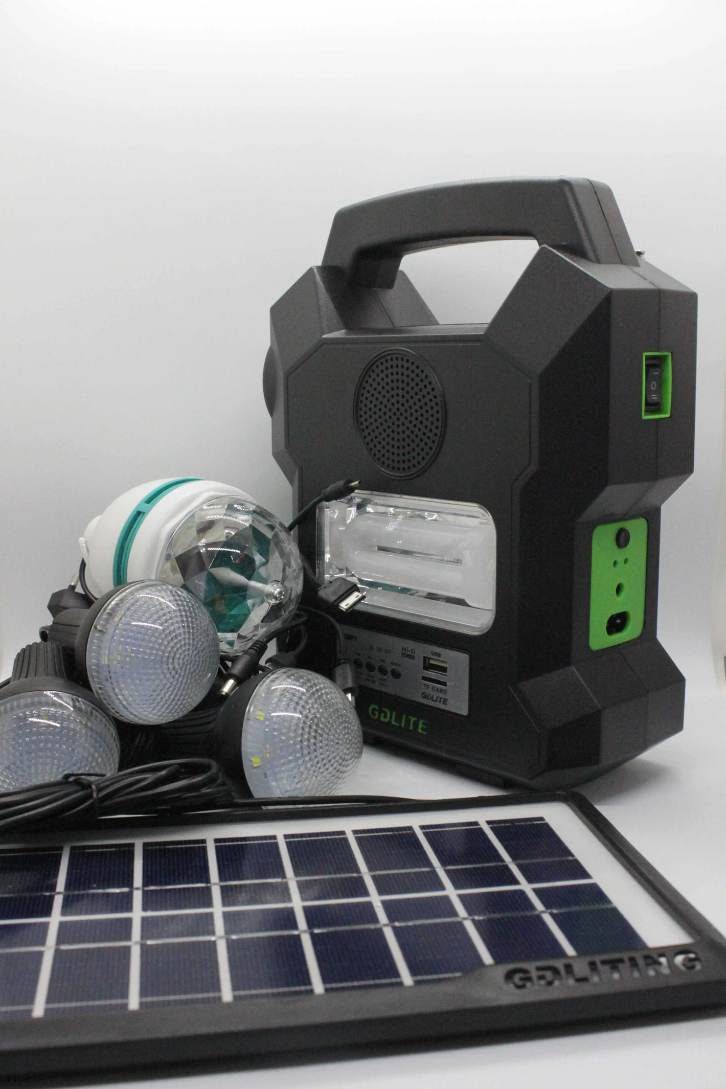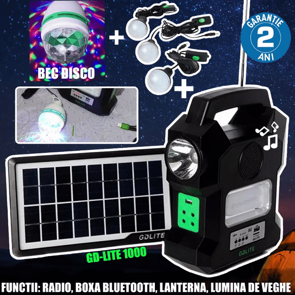 Include cabluri si mufe compatibile cu majoritatea telefoanelor pentru ca oriunde vei fi sa nu mai ramai niciodata fara baterie la telefon. Fie ca esti plecat cu cortul, la pescuit sau pur si simplu nu mai ai curent acasa, vei avea unde sa incarci telefonul, sa asculti radio si sa pui muzica de pe telefon prin BLUETOOTH.