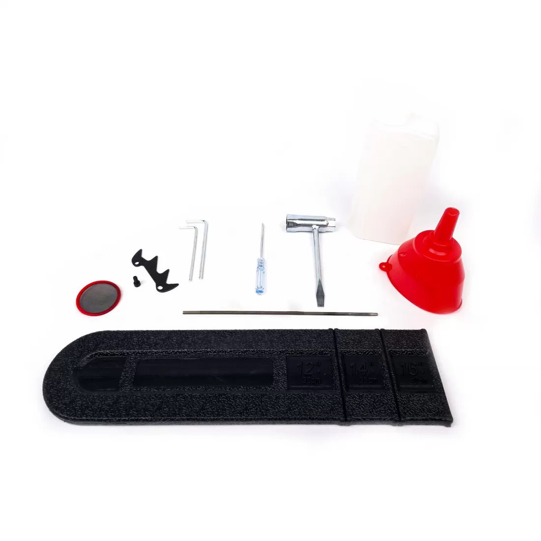 – Sticlă de ulei de lanț (0,5 L) și sticlă de ulei de amestec (0,5 L), astfel încât să poți lucra direct după montaj
