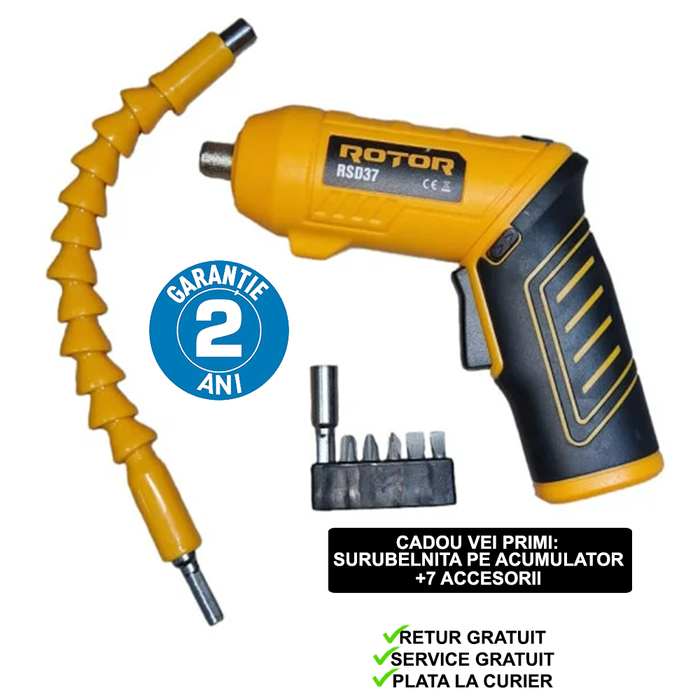 🎁CADOU: Surubelnita pe acumulator ROTOR, 3.7V, 1500mAh