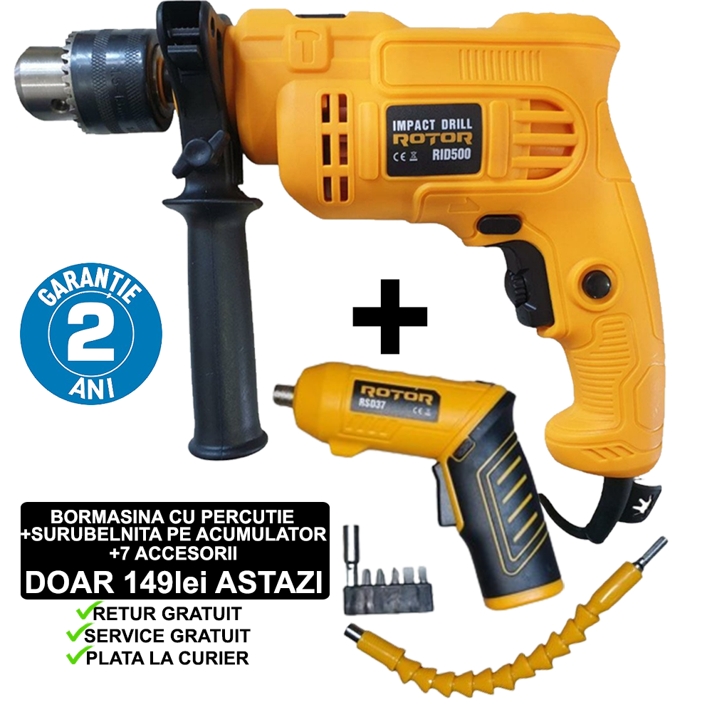 Bormasina cu PERCUTIE Rotor RID500, 500W, 3000RPM