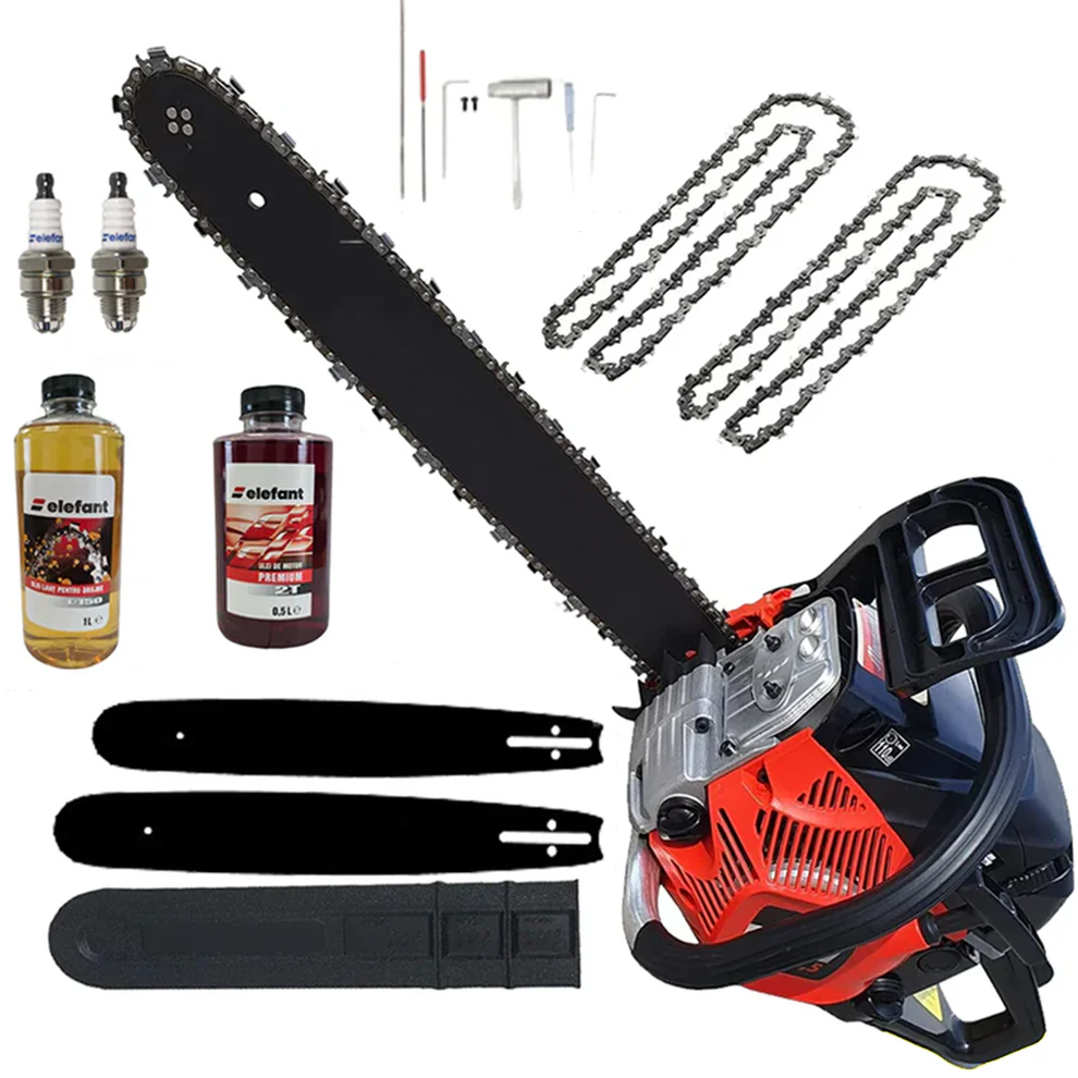 Pachet PROMO: Drujba pe benzina Campion 7,5CP + 2 lame + 2 lanturi + 2 bujii + 1 sticla ulei lant + 1 sticla ulei amestec