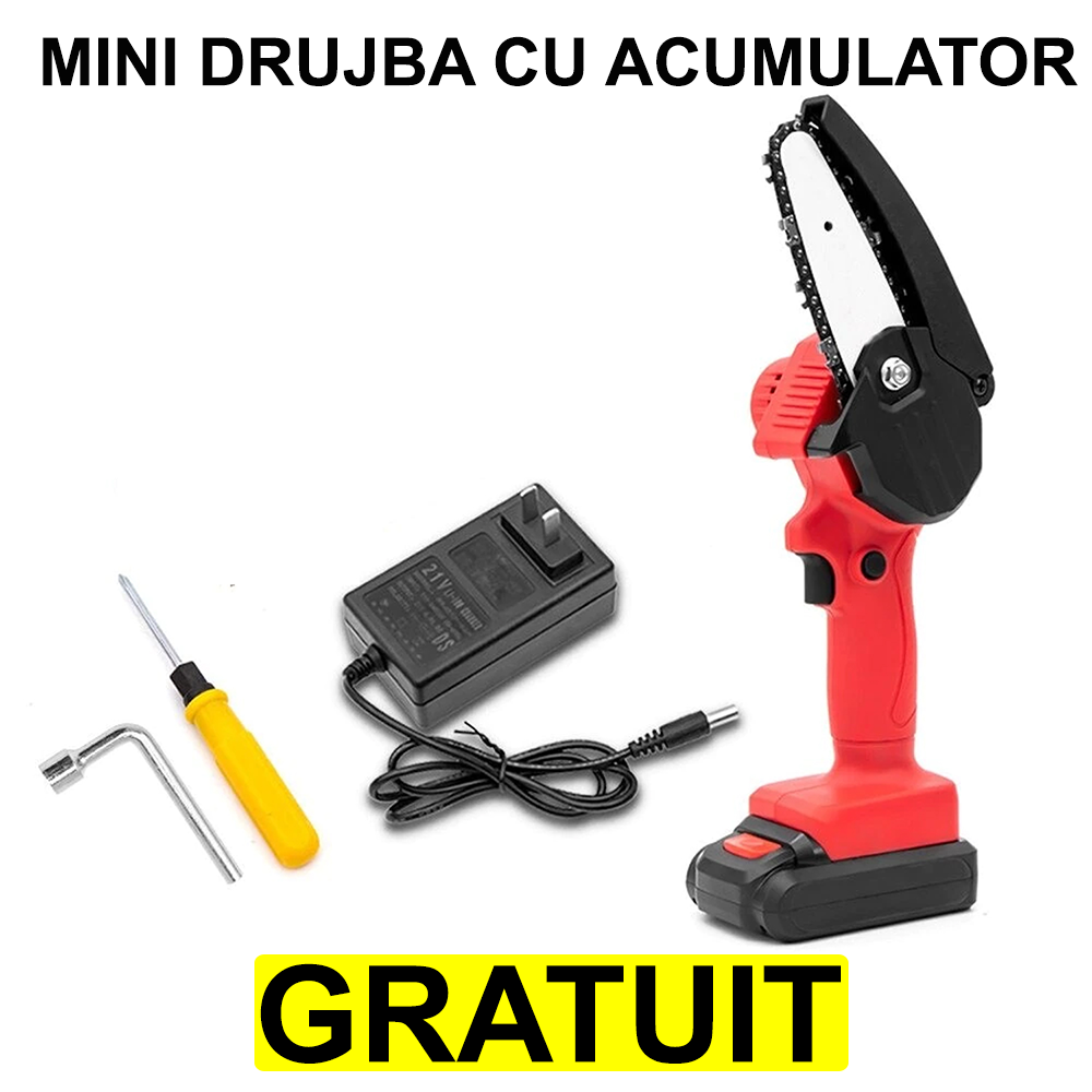 Pachetul include: fierăstrău fără fir, baterie, încărcător, cheie