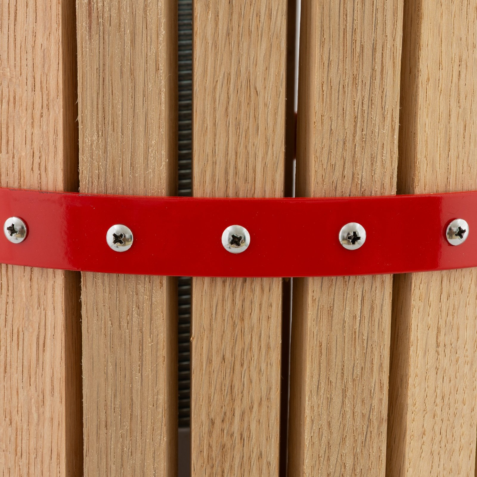 Fabricată din lemn masiv (stejar/fag tratat alimentar) și armături de fontă + oțel, pentru durabilitate pe termen lung