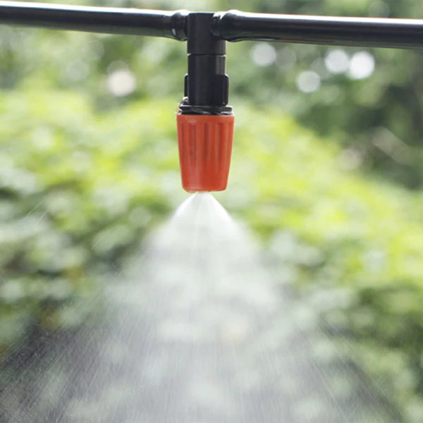 Instrucțiuni de utilizare: Kitul cu duze se conectează la o sursă de apă, iar la o presiune minimă, acesta poate pulveriza apa eficient. Apa este împinsă prin orificiile duzei cu presiunea specifică sursei, creând o pulbere fină de apă care răcește aerul semnificativ, menținând o temperatură constantă în spațiile exterioare.
