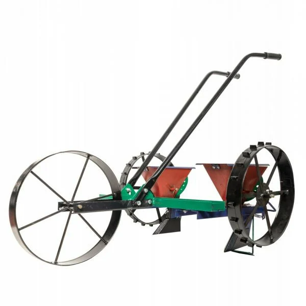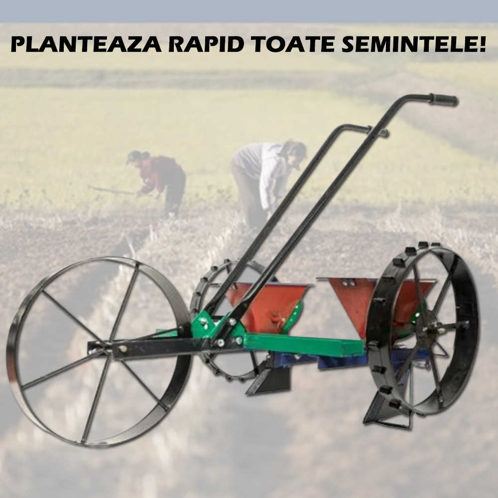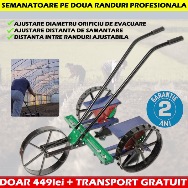 Sermanatoare mecanica Vinita doua randuri grabeste lucrarile de semanre in gradinile de dimensiuni medii si mari. Mecanismul simplu de lucru permite semanarea a doua randuri paralele in acelasi timp.