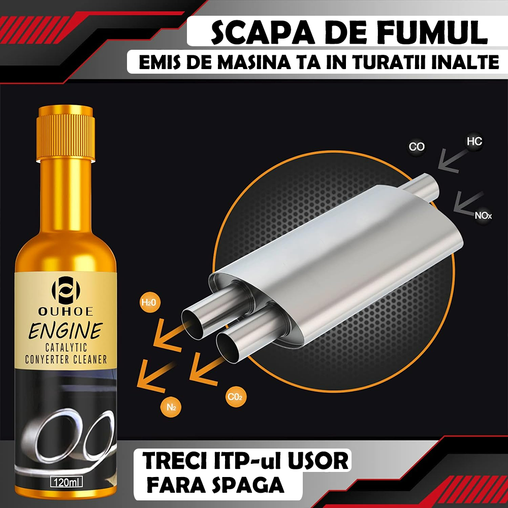 Acesta solutie curata la perfectie catalizatorul si piesele din interiorul motorului. Elimina gazele de esapament si vei trece fara griji de ITP data viitoare.