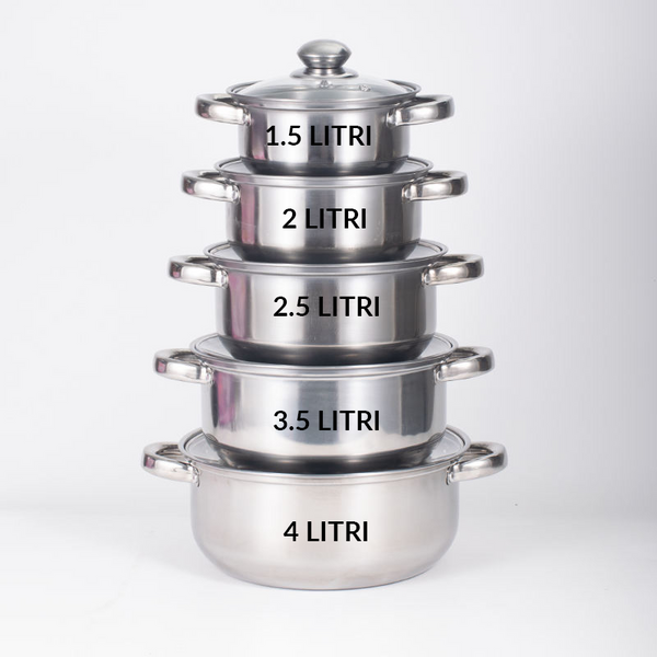 Set Oale 10 Piese din Inox (Diametru de 16-18-20-22-24cm)