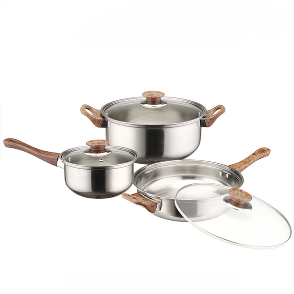 Set Oale 12 Piese model LEMN din Inox (Diametru de 16-18-20-22-24-28cm)